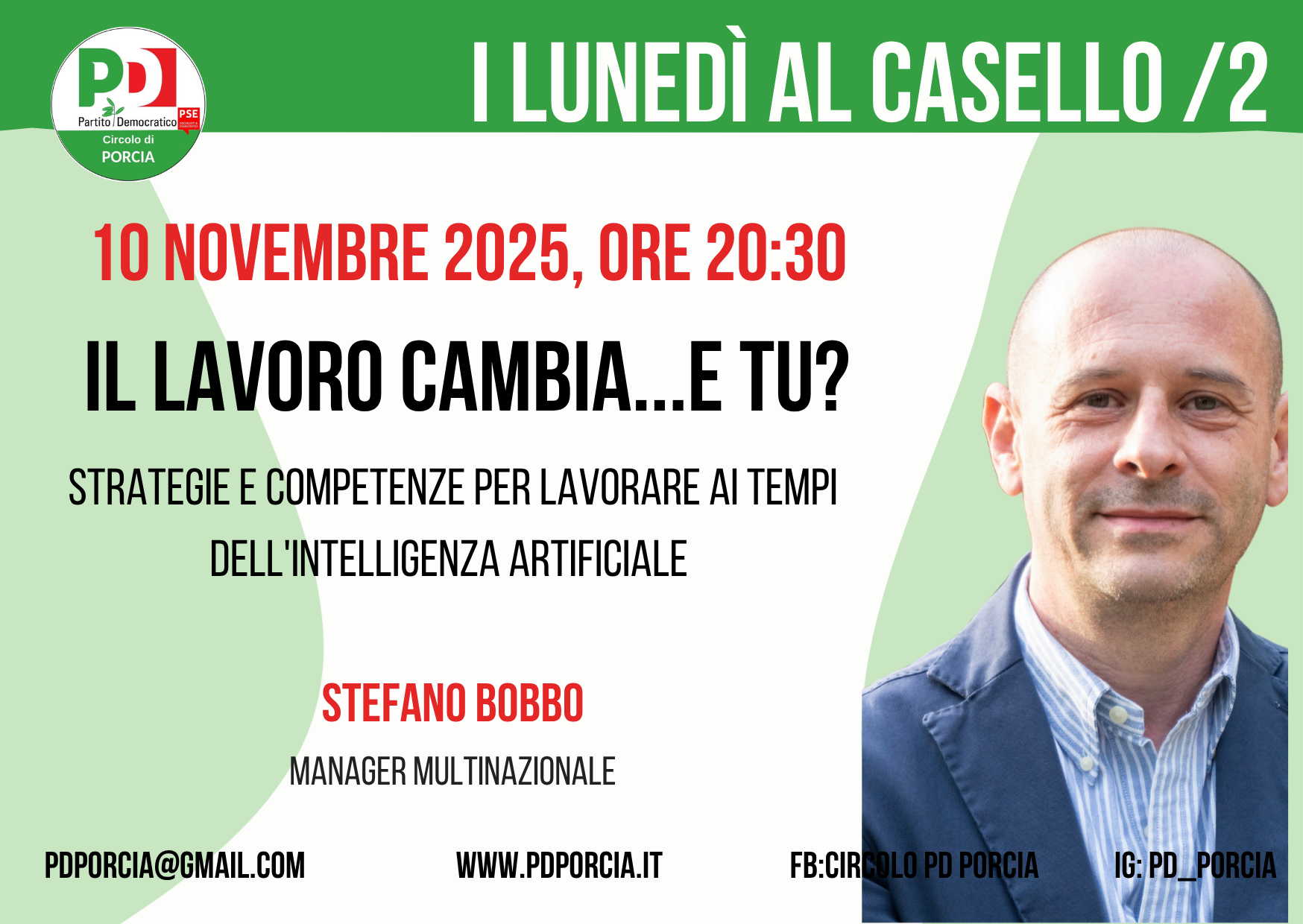 Casello di Guardia Via De Pellegrini, PorciaIl mondo del lavoro sta cambiando velocemente: Automazione, IA, nuove competenze e ruoli che spariscono o nascono da zero. Non basta più “sapersi adattare”, serve capire dove sta andando il cambiamento. Insieme esploreremo: Come l’IA…